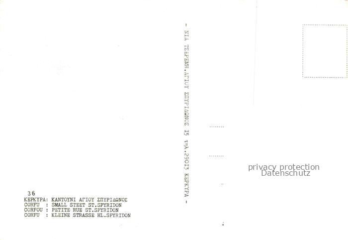 74042502 Corfu Korfu Greece Kleine Strasse Hl. Spyridon postalisch nicht gelaufen Erhaltung siehe scans [WerneD78] KatCode: 11190