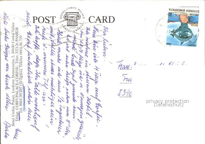 old postcard Corfu Korfu Hotel Corfou Palace postalisch gelaufen Erhaltung siehe scans