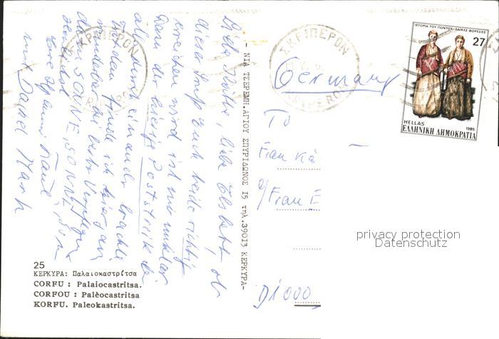 old postcard Corfu Korfu Kepkypa Paleokastritsa postalisch gelaufen Erhaltung siehe scans