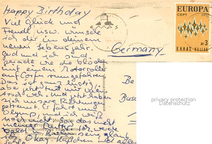 old postcard Corfu Korfu Kloster postalisch gelaufen Erhaltung siehe scans [LiesaD40]