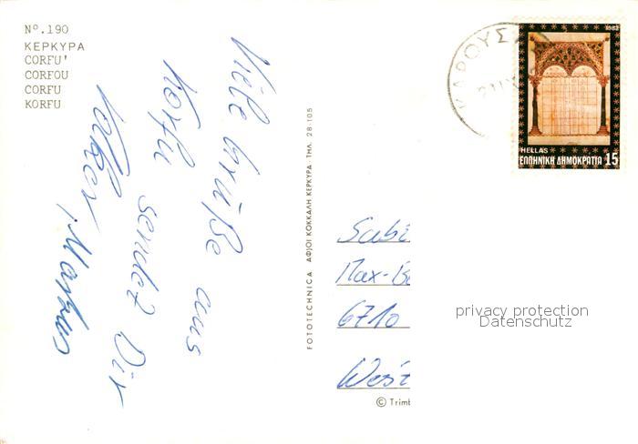 old postcard Corfu Korfu Landkarte Insel Badestrand Bucht Fliegeraufnahme postalisch gelaufen Erhaltung siehe scans [FriedD77]