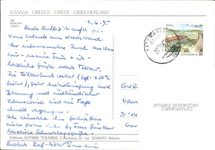 old postcard Corfu Korfu Landkarte postalisch gelaufen Erhaltung siehe scans