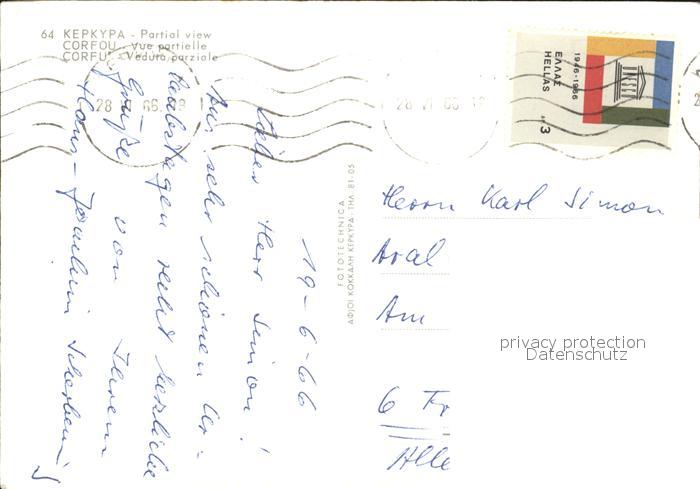 old postcard Corfu Korfu Panorama Kueste postalisch gelaufen Erhaltung siehe scans