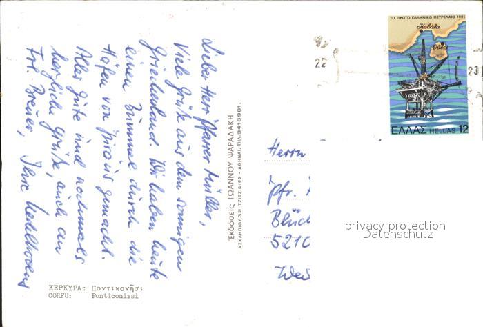 old postcard Corfu Korfu Pontikonissi Maeuseinsel postalisch gelaufen Erhaltung siehe scans