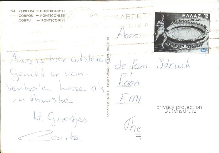old postcard Corfu Korfu Pontikonissi Maeuseinsel postalisch gelaufen Erhaltung siehe scans