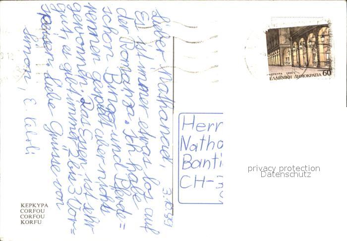 old postcard Corfu Korfu Teilansichten Kueste Felsen Pontikonissi postalisch gelaufen Erhaltung siehe scans