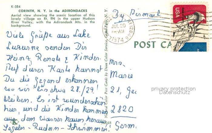 73646866 old postcard Corinth New York in the Adirondacks Aerial view postalisch gelaufen Erhaltung siehe scans [WerneD78] KatCode: 14140340000000