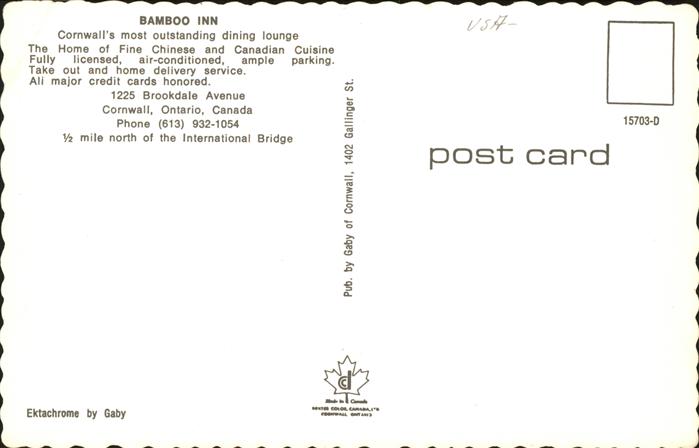 Cornwall Ontario Bamboo Inn Dining Lounge Restaurant postalisch nicht gelaufen Erhaltung siehe scans