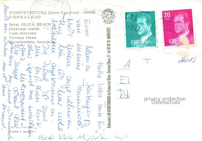 74086263 old postcard Corralejo Fuerteventura ES Hotel Oliva Beach Diversas vistas postalisch gelaufen Erhaltung siehe scans [WerneD78] KatCode: 11510