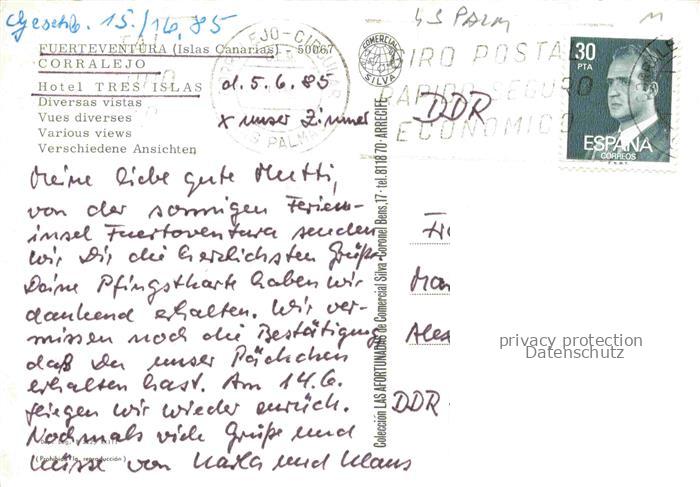74155996 old postcard Corralejo Fuerteventura ES Hotel Tres Islas Strand postalisch gelaufen Erhaltung siehe scans [WerneD78] KatCode: 11510