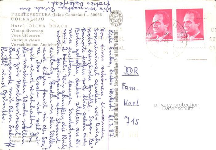old postcard Corralejo Hotel Oliva Beach postalisch gelaufen Erhaltung siehe scans [LiesaD40]
