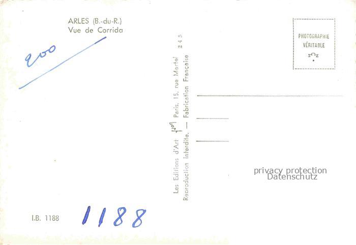 74095729 Corrida de Toros Stierkampf Bullfight– Arles I.B 1188 postalisch nicht gelaufen Erhaltung siehe scans [SanaeD93] KatCode: 22520000000500