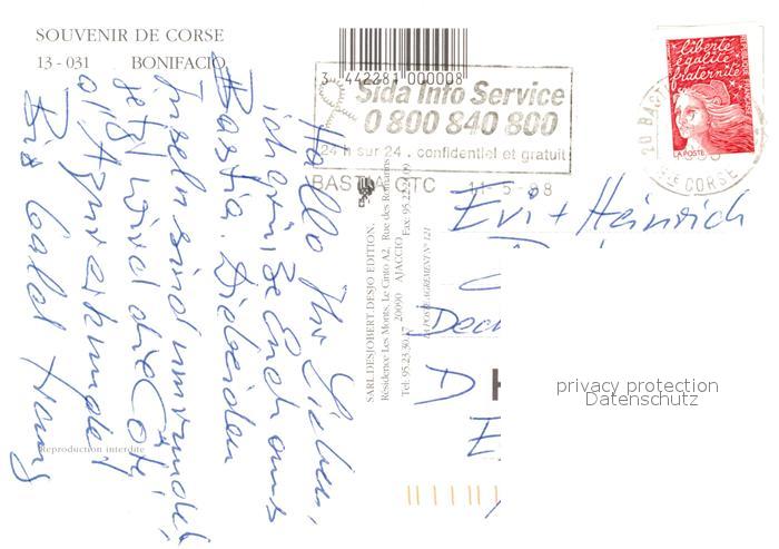 13090950 carte postale Corse Ile de Fliegeraufnahme Bonifacio postalisch gelaufen Erhaltung siehe scans [KathaD81] KatCode: 1117002A12A004