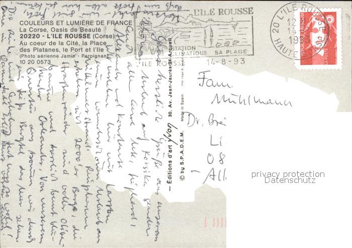 12497720 carte postale Corse Ile de Ile Rousse postalisch gelaufen Erhaltung siehe scans KatCode: 1117002A12A004
