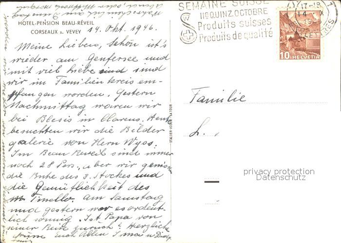 11644829 alte Postkarte Corseaux Hotel Pension Beau Reveil postalisch gelaufen Erhaltung siehe scans KatCode: 11470240845856