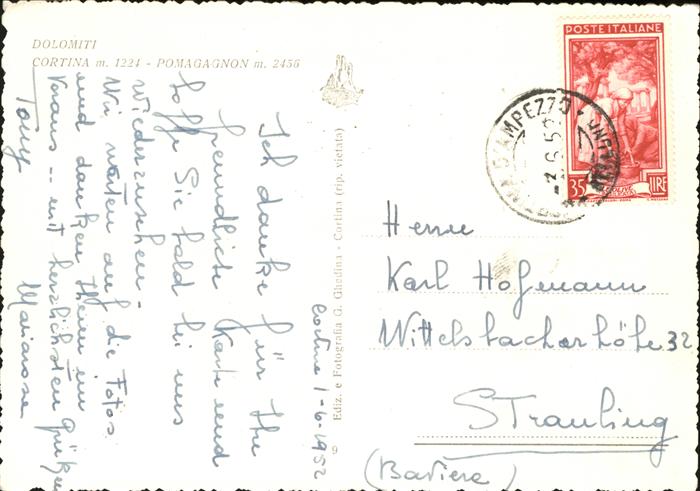 old postcard Cortina d Ampezzo postalisch gelaufen Erhaltung siehe scans