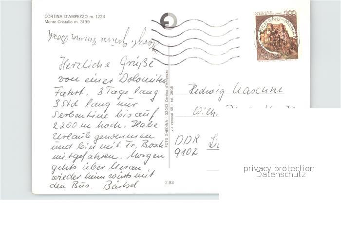 old postcard Cortina d Ampezzo Chiesa Monte Cristallo postalisch gelaufen Erhaltung siehe scans [FriedD77]