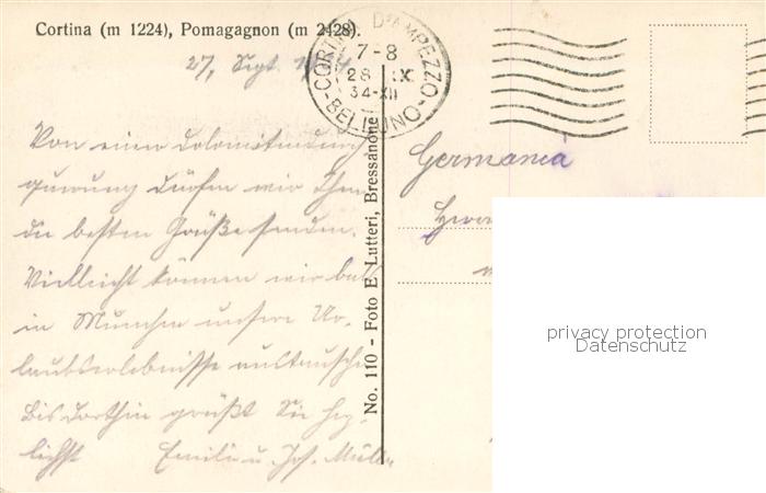 old postcard Cortina d Ampezzo Gesamtansicht m. Pomagagnon postalisch gelaufen Erhaltung siehe scans [LiesaD40]
