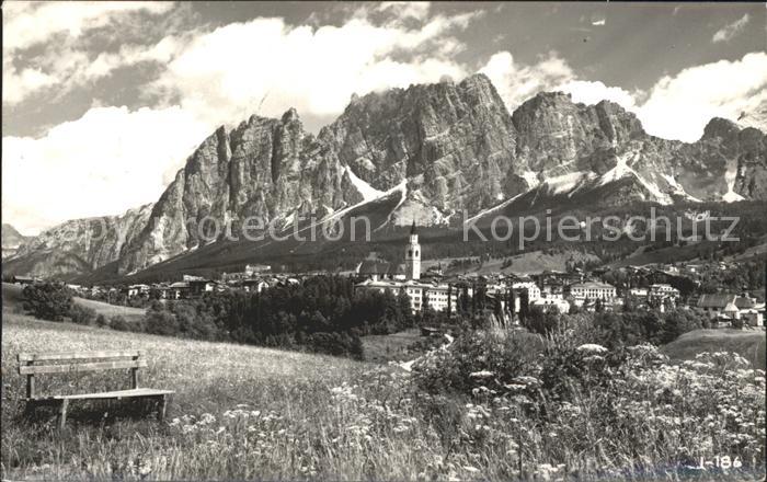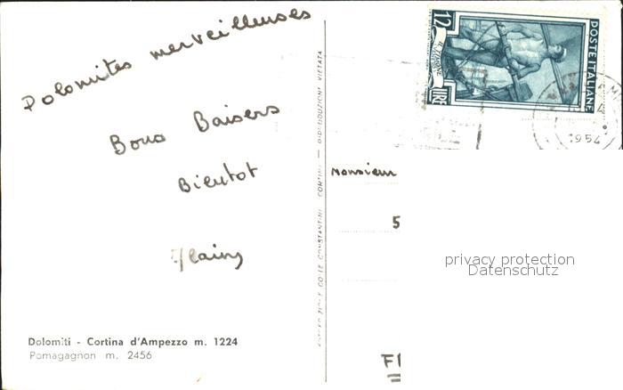old postcard Cortina d Ampezzo Gesamtansicht mit Pomagagnon Dolomiten postalisch gelaufen Erhaltung siehe scans