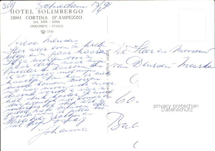 Cortina d Ampezzo Hotel Solimbergo postalisch nicht gelaufen Erhaltung siehe scans