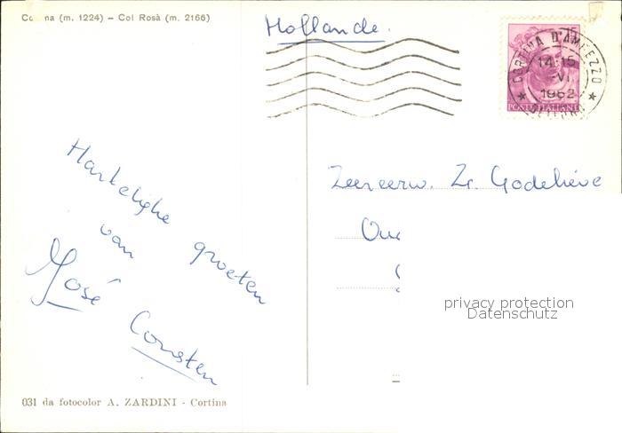 old postcard Cortina d Ampezzo Ortsansicht mit Kirche Col Rosa postalisch gelaufen Erhaltung siehe scans
