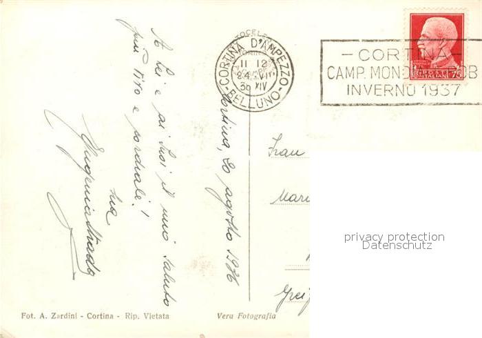 43019877 Cortina d Ampezzo Panorama mit Tofane Dolomiten postalisch gelaufen Erhaltung siehe scans [FriedD77] old postcard Frie Katcode 11240
