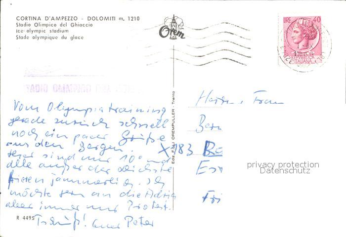 old postcard Cortina d Ampezzo Stadio Olimpico del Ghiaccio postalisch gelaufen Erhaltung siehe scans