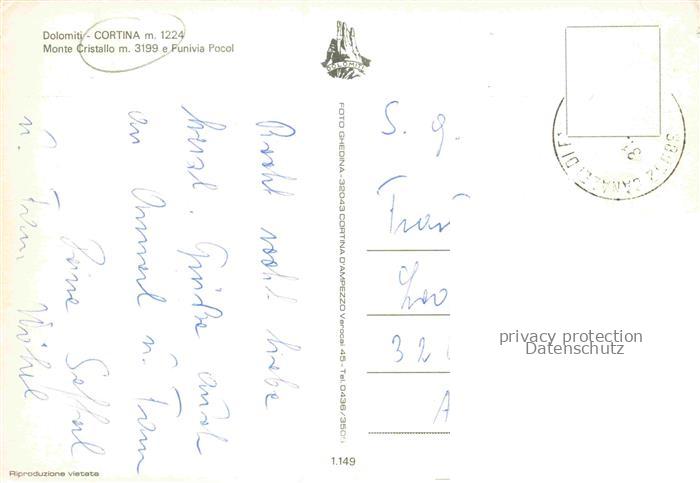 74136940 old postcard Cortina d Ampezzo Veneto IT Monte Cristallo e Funivia Pocol postalisch gelaufen Erhaltung siehe scans [WerneD78] KatCode: 11240