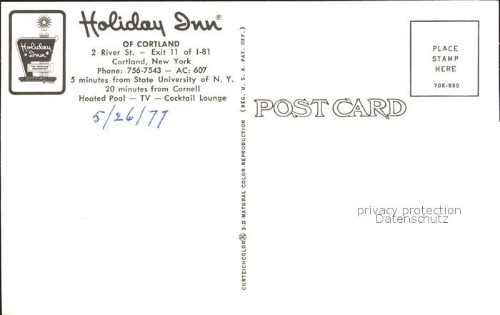 72285082 Cortland New York Holiday Inn Hotel Zeichnung postalisch nicht gelaufen Erhaltung siehe scans KatCode: 14140340000000