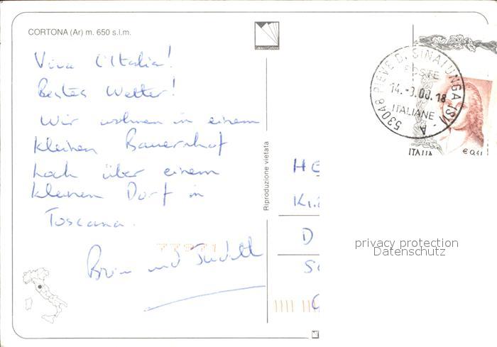 old postcard Cortona Fliegeraufnahme postalisch gelaufen Erhaltung siehe scans