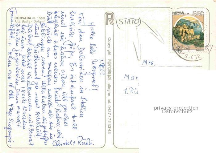 74005919 old postcard Corvara 1558m Pustertal Suedtirol IT Alta Badia Panorama postalisch gelaufen Erhaltung siehe scans [WerneD78] KatCode: 11240