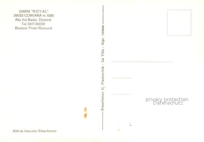 Corvara Pustertal Suedtirol Garni Royal Winter postalisch nicht gelaufen Erhaltung siehe scans [KathaD81]