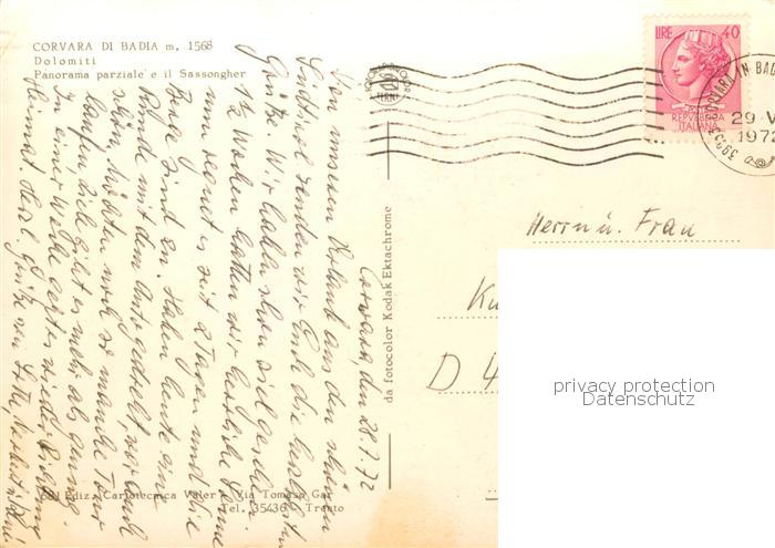 old postcard Corvara Pustertal Suedtirol IT Panorama parziale e il Sassongher postalisch gelaufen Erhaltung siehe scans [WerneD78]