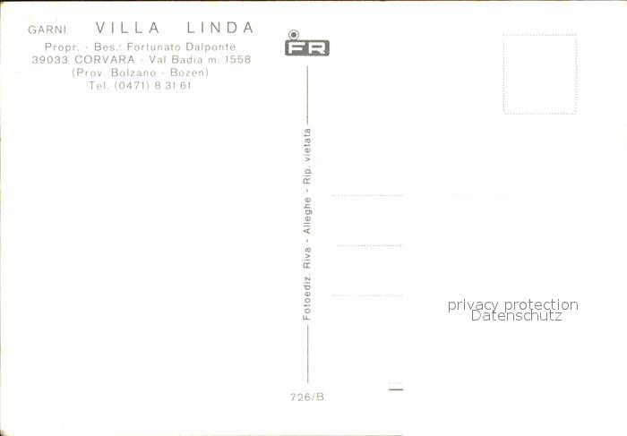 Corvara Pustertal Suedtirol Villa Linda postalisch nicht gelaufen Erhaltung siehe scans [NatalD47]