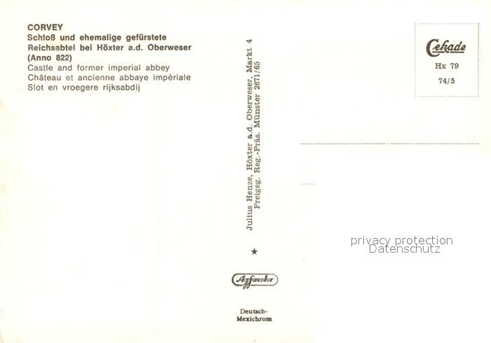 73169864 Corvey Fliegeraufnahme Schloss gefuerstete Reichsabtei postalisch nicht gelaufen Erhaltung siehe scans [KathaD81] KatCode: 11110005762020