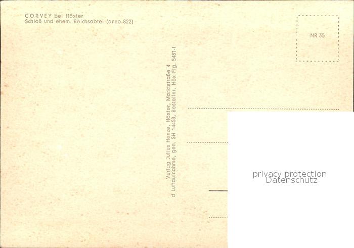 72614305 Corvey Fliegeraufnahme Schloss und ehemalige Reichsabtei postalisch nicht gelaufen Erhaltung siehe scans [LiesaD40] KatCode: 11110005762020