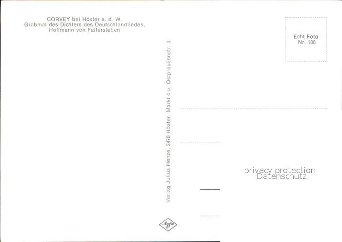 72534523 Corvey Grabmal Hoffmann von Fallerseben postalisch nicht gelaufen Erhaltung siehe scans [AndreD76 kt121box] KatCode: 11110005762020