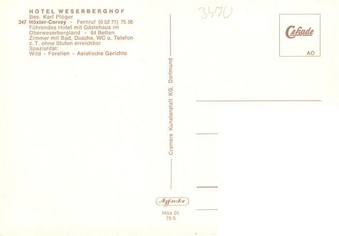 73943976 Corvey Hoexter Weser Hotel Weserberghof postalisch nicht gelaufen Erhaltung siehe scans [FriedD77] Frie Katcode 11110005762020