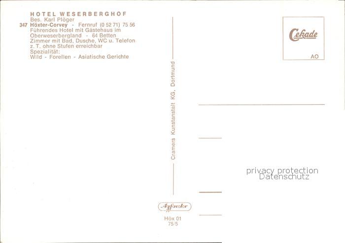 72549290 Corvey Hotel Weserberghof postalisch nicht gelaufen Erhaltung siehe scans [LiesaD40 kv021box] KatCode: 11110005762020