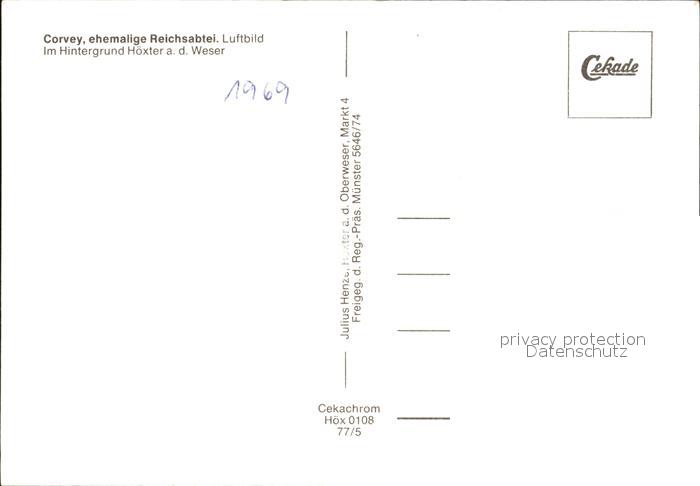 72429613 Corvey Reichsabtei Luftbild postalisch nicht gelaufen Erhaltung siehe scans KatCode: 11110005762020