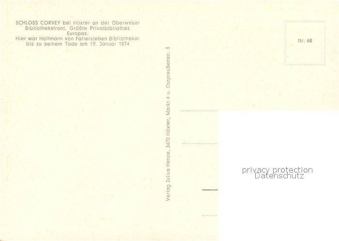 73165601 Corvey Schloss Corvey Bibliotheksfront postalisch nicht gelaufen Erhaltung siehe scans [WerneD78] KatCode: 11110005762020