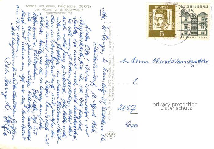 72775124 alte Postkarte Corvey Schloss Reichsabtei postalisch gelaufen Erhaltung siehe scans [AndreD76] KatCode: 11110005762020