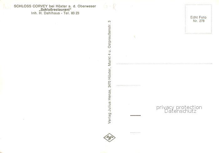 73686326 Corvey Schloss Restaurant Wappen postalisch nicht gelaufen Erhaltung siehe scans [FriedD77] KatCode: 11110005762020