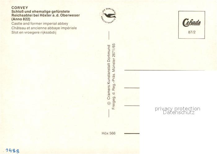 73541120 Corvey Schloss und ehem gefuerstete Reichsabtei bei Hoexter Fliegeraufnahme postalisch nicht gelaufen Erhaltung siehe scans [WerneD78] KatCode: 11110005762020
