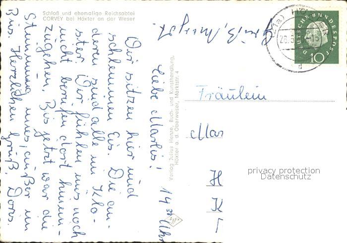 72408871 alte Postkarte Corvey Schloss und ehem Reichsabtei Fliegeraufnahme postalisch gelaufen Erhaltung siehe scans KatCode: 11110005762020