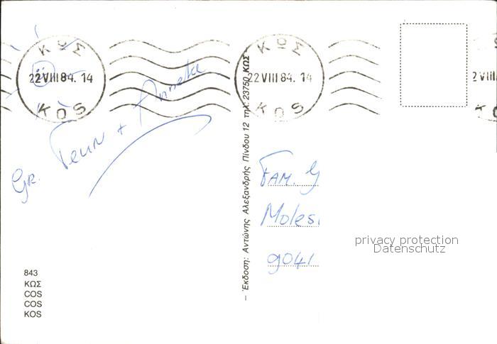 old postcard Cos Kos Esel Fischer postalisch gelaufen Erhaltung siehe scans