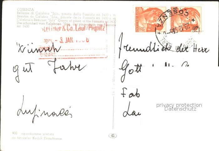 old postcard Cosenza Sila Pineta della Fossiata mt. Pinienhain postalisch gelaufen Erhaltung siehe scans