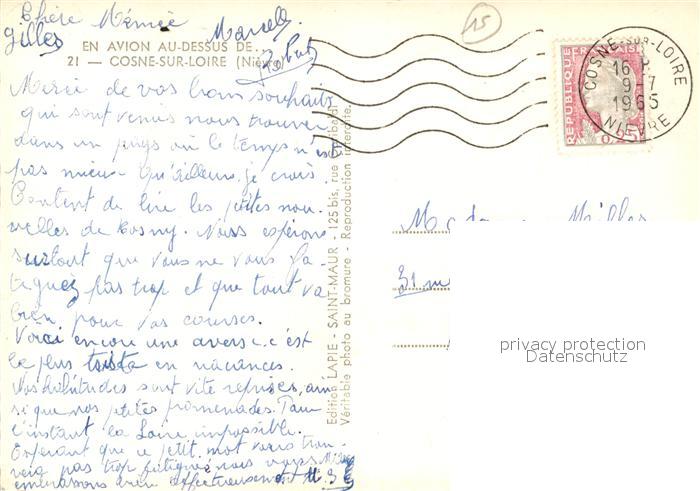 13222973 carte postale Cosne-Cours-sur-Loire Fliegeraufnahme postalisch gelaufen Erhaltung siehe scans [LiesaD40] KatCode: 11170058458086