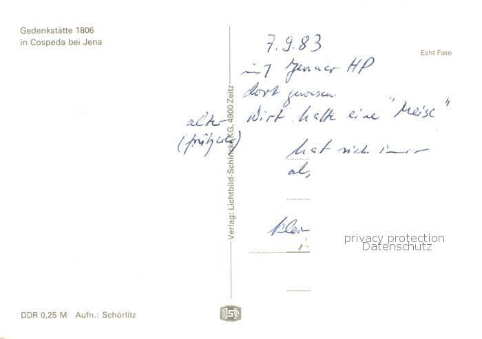 73751126 Cospeda Gedenkstaette 1806 postalisch nicht gelaufen Erhaltung siehe scans [WerneD78] KatCode: 11110016053000