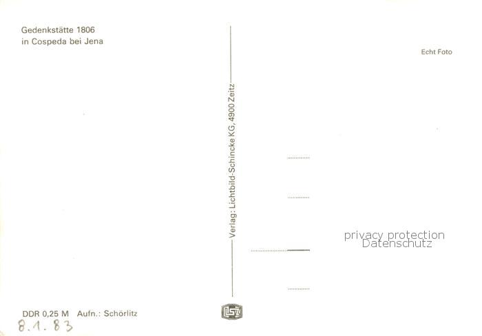 73842514 Cospeda Gedenkstaette 1806 postalisch nicht gelaufen Erhaltung siehe scans [FriedD77] KatCode: 11110016053000